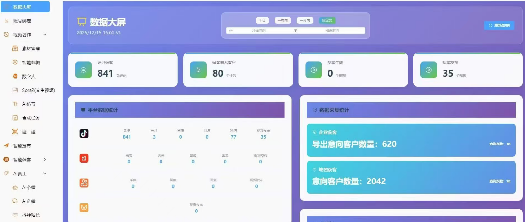 AI 数据大屏自动统计: