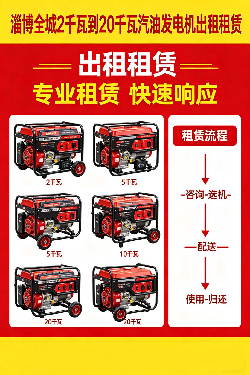 淄博本地发电机出租,专注应急供电服务,设备齐全,型号多样,静音、柴油款发电机满足不同功率、噪音需求。纯铜电机,稳压输出,保护电器设备安全,自带多重安全保护,使用放心。24小时上门服务,免费安装调试,全程售后保障,适用于工地、工厂、商场、医院、学校、养殖、演出等,价格合理,无隐形消费。