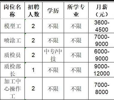 山东必拓重工有限公司招聘模型工,喷涂工,质检员,质检部长,加工中心操作工联系人:王经理地址:山东省淄博市淄川区昆仑镇迎宾路…