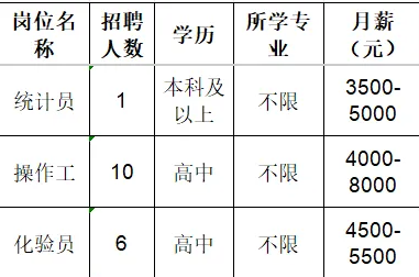 山东宝塔新能源有限公司招聘统计员,操作工,化验员