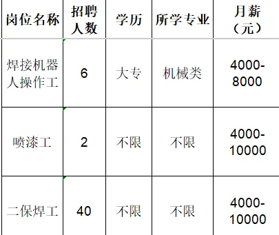 山东佳能科技股份有限公司招聘焊接机器人操作工,喷漆工,二保焊工联系人:贾经理地址:山东省淄博市淄川区…