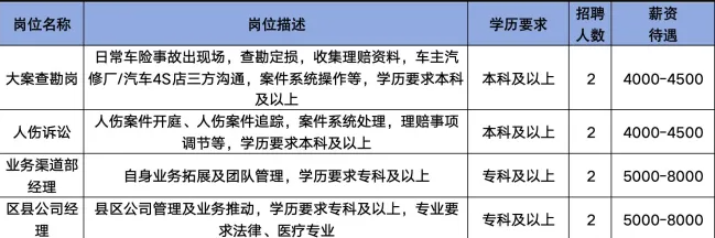 亚太财产保险有限公司淄博中心支公司招聘大案查勘人员,人伤诉讼,业务渠道部经理,区县公司经理福利待遇:正式劳动合同、五险一金、双休、法定节假日福利待遇联系人:李老…