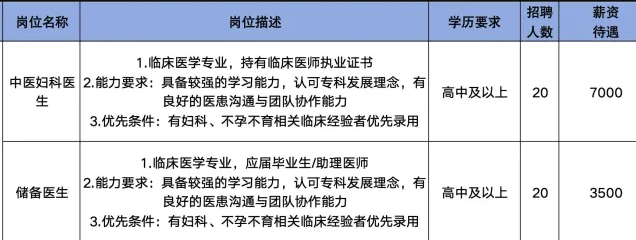 淄博张店瑞生医院招聘中医妇科医生,储备医生